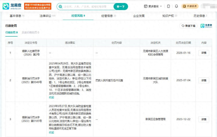 除了这次被罚违反劳动法被罚12150元之外,在2025年7月,涉事公司【无锡当当网信息技术有限公司】还因消防被罚款1.50万元。